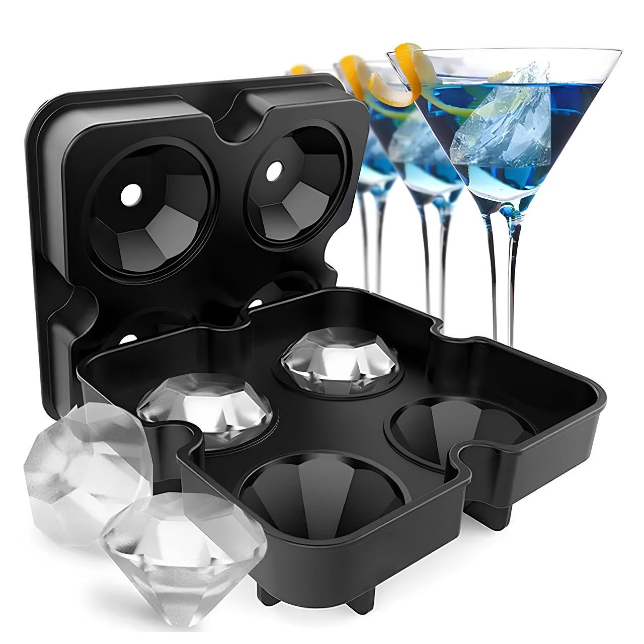 Ця модель має 4 комірки, кожна з яких формує лід у вигляді гладкого багатогранного алмаза. Завдяки щільній конструкції з кришкою, що щільно прилягає, вода не проливається, а лід виходить рівним і чітким, без сколів та бульбашок. Готовий лід у формі діаманта ідеально підходить для подачі у склянках із віскі, коктейлями, газованими напоями або просто для декору напоїв на вечірці. Він не лише охолоджує, а й додає естетики кожному напою.